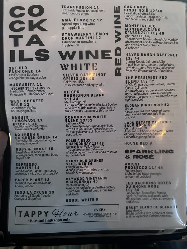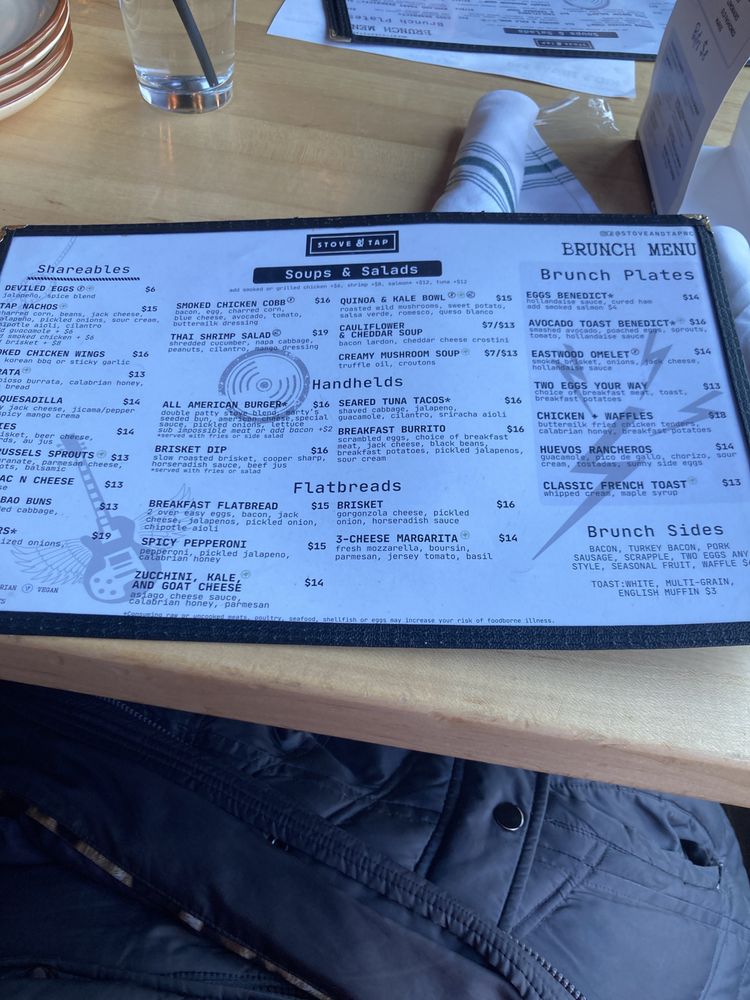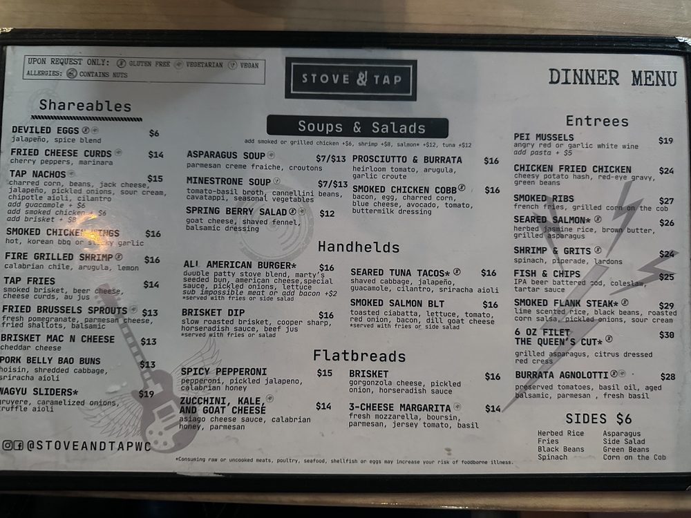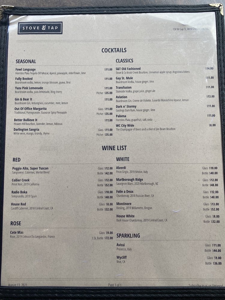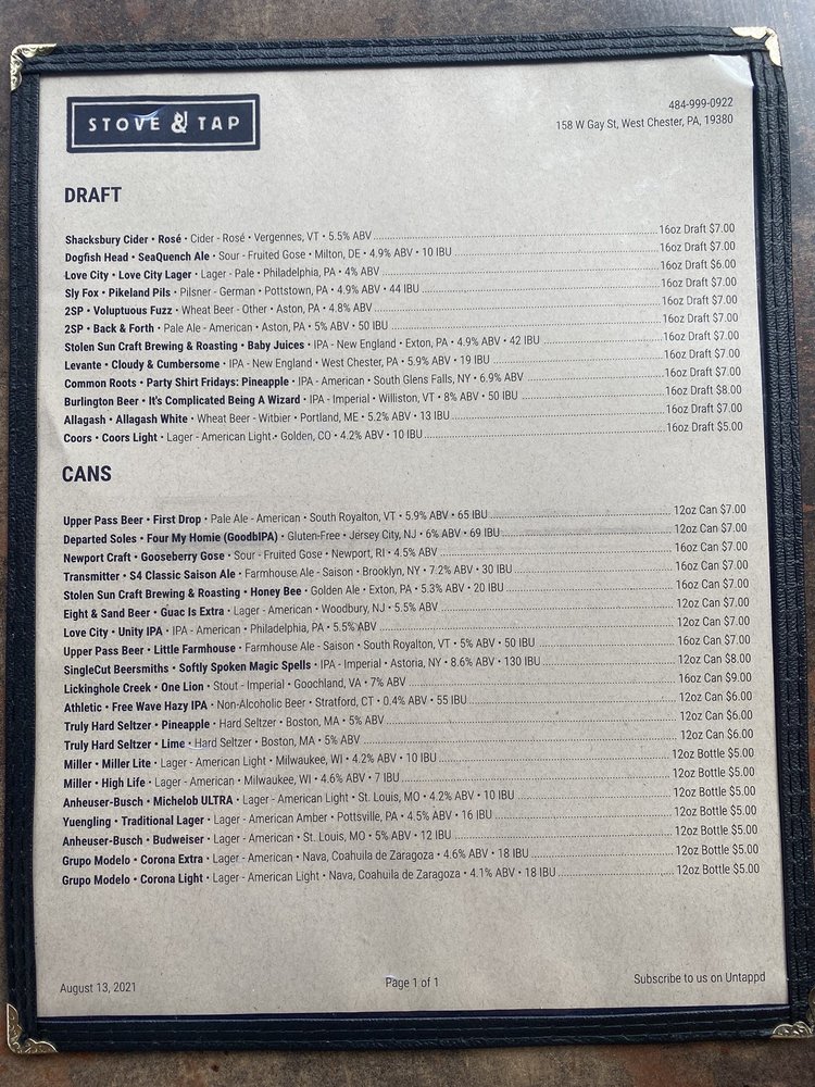 Introducing Stove and Tap, located in West Chester, PA, a vibrant American restaurant that offers a diverse menu including mouthwatering shareables like Tap Nachos and Brisket Mac and Cheese. Indulge in the savory Handhelds section with options like the All American Burger or Duck Quesadilla. Customers rave about the delicious food and drink options, with standout dishes like the nachos and brisket flatbread. The lively atmosphere and excellent service make Stove and Tap a must-visit spot for a fun dining experience. Don't miss out on their creative cocktails and expansive menu perfect for any occasion.